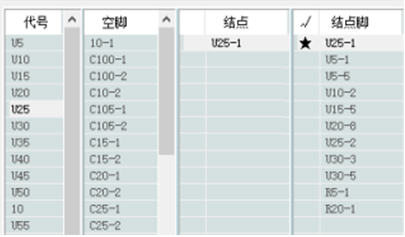 (3)在結(jié)點(diǎn)腳列表中,從第二個管腳 U5-1 開始,逐管腳檢查與管腳U25-1 是否短接。 如果不是,從結(jié)點(diǎn)腳列表中刪去,被刪掉的管腳又重新回到空腳列表。 確認(rèn) 完成后, 得到以 U25-1 命名的結(jié)點(diǎn)網(wǎng)表。