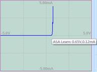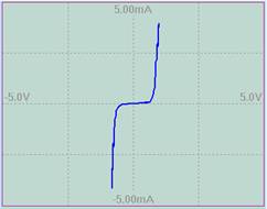 反向截止,電流基本為0;正向?qū)ü拯c(diǎn)在0.65V。導(dǎo)通后的電阻很小,電流很快上升。 |