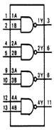 下面通過7403的邏輯功能描述說明一下格式。7403是一個集電極開路輸出四雙輸入與非門。邏輯圖如下和功能描述如下: