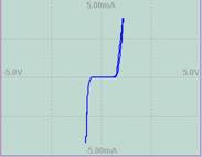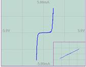 上面的結(jié)點(diǎn)中,包含兩個(gè)PN結(jié)。在PN結(jié)正負(fù)向?qū)ㄖ螅瑢?dǎo)通電阻很小,完全“淹沒”了15K電阻——電阻是否存在基本不影響曲線形狀;這個(gè)電阻只能在0電壓點(diǎn)附近(兩拐點(diǎn)之間,PN結(jié)電阻遠(yuǎn)大于15K)呈現(xiàn)出來。仔細(xì)觀察,可發(fā)現(xiàn)零點(diǎn)附近曲線略有不同。但由于這段曲線所占比例很小,可用于顯示的點(diǎn)數(shù)更是有限,最終如上圖所示,兩條曲線整體形狀相差不多——故障被掩蓋。